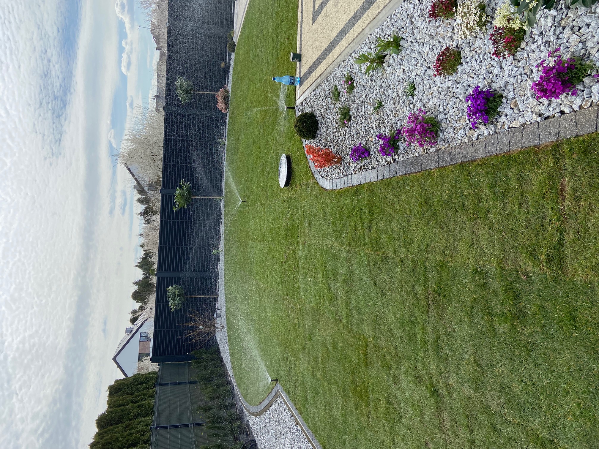 Wykonaliśmy instalację systemu nawadniania, który zapewnia równomierne podlewanie trawnika i roślin, co jest kluczowe przy zakładaniu ogrodów.